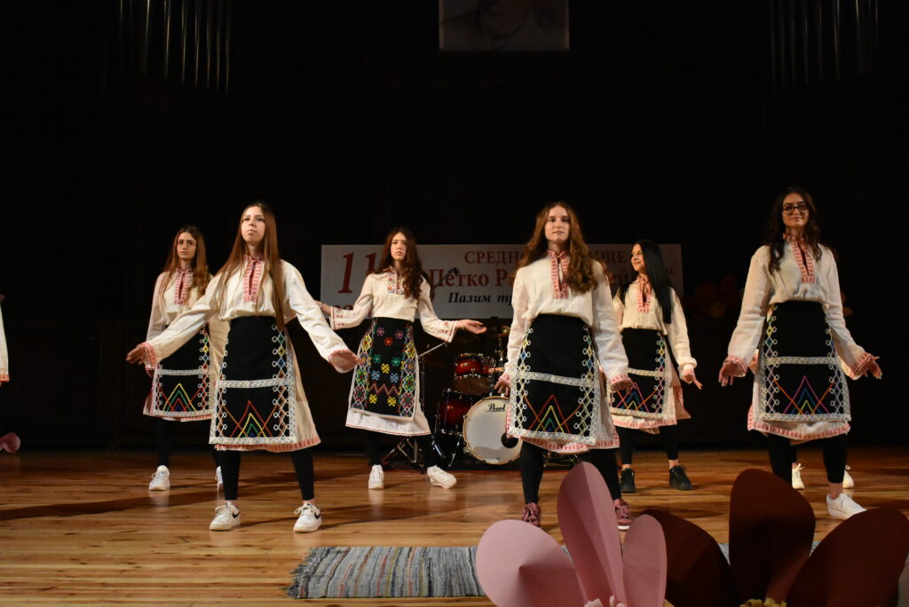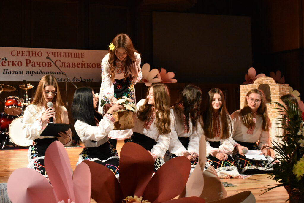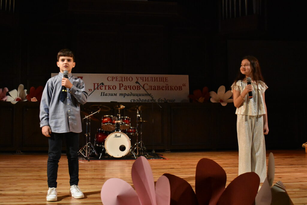 В ден, изпълнен с гордост, традиции и силни емоции, СУ „П. Р. Славейков“ отбеляза своя патронен празник с тържествен концерт. Под наслов „Талантите на „Славейков“, възпитаниците ни с много настроение сътвориха уникална феерия от слово, музика и танци. Ученици от всички образователни степени, победители в конкурса „Училището търси талант“, изпълниха залата с дарование и артистично присъствие. Програмата отрази креативността и творческата енергия на Славейковци. Сцената оживя под стъпките, гласовете и вдъхновението на малките и големи момичета и момчета, които за пореден път доказаха, че духът на знанието и творчеството е жив във всяко поколение. Празнично поздравление поднесе директорът на училището. „Да се гради авторитет и име на училище е нелека задача, не се случва изведнъж и не е завинаги.“, бяха част от думите на г-н Велин Колев, който пожела на всички, свързани с името СУ „П. Р. Славейков“ да пазят в сърцата си Славейковския дух. Спектакълът започна с театрален етюд, вдъхновен от творчеството на нашия патрон. Младите актьори пресъздадоха поетичния свят на Петко Славейков и развълнуваха гости, преподаватели и съученици с артистичните си умения и всеотдайност. Прозвуча и любимата „Татковина“, поднесена с емоция и вълнение от прогимназистите. Ритъмът и красотата на народните танци, представени с лекота и темперамент, разкриха богатството на българските традиции. Вокалните изпълнения, индивидуални и групови, изпълниха залата с нежност, сила и музикална хармония и представиха пъстра палитра от жанрове. Младите ни таланти плениха гостите и със съвременни танци, изпълнени с енергия, артистизъм и модерно сценично излъчване. Залата беше разтърсена от мощните удари на барабани — изпълнение, което внесе динамика и силен ритъм в тържествената програма. Публиката изпрати изпълнителите с бурни овации и искрена благодарност за труда, таланта и емоциите. Всеки един от тях и всички заедно успяха да грабнат вниманието, да разпалят въображението и да вдъхновят присъстващите.