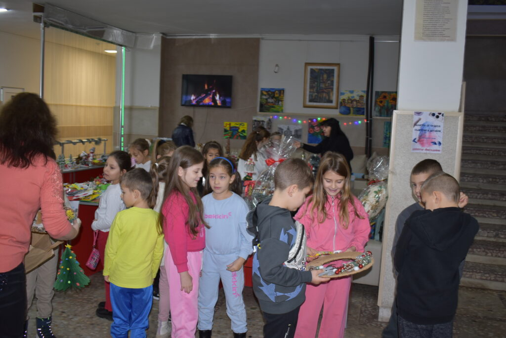 Базарът предложи ръчно изработени картички, декоративни предмети и малки коледни украшения, дело на сръчните ръце и въображението на нашите ученици. Всеки щанд блестеше с уникални изделия, създадени с много старание, настроение и фантазия. Денят беше съпътстван и от специална кулинарна изложба. Ученици и учители имаха възможност да опитат домашно приготвени сладкиши, солени изкушения и други вкусни предложения, опаковани и подредени с внимание и отношение към празника.