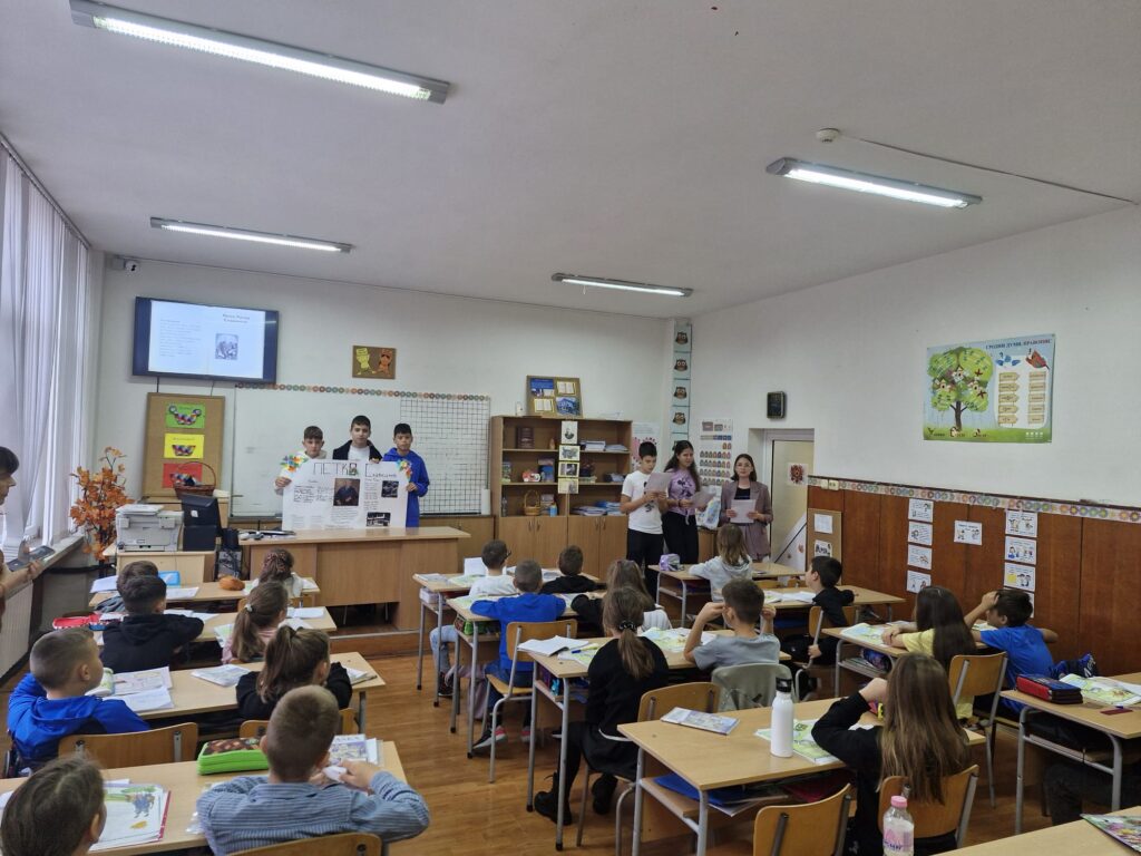 Вълнуваща среща между седмокласници и третокласници, посветена на живота и делото на патрона на училището, се проведе в рамките на седмицата на Славейков. Събитието беше част от ученическия проект „Съвременни Славейковци“, подготвен с желание и вдъхновение от учениците от VII а клас. Седмокласниците представиха мултимедийна презентация, в която по достъпен и увлекателен начин разказаха на по-малките си съученици за личността, творчеството и делото на Петко Славейков – за неговия принос като поет, просветител и борец за българската духовност. Те споделиха интересни факти и любопитни истории от живота му, като подчертаха, че словото и знанието са най-силното оръжие на човека. Седмокласниците изработиха и цветно табло, което представиха по време на срещата. В него те включиха цитати, снимки и илюстрации, отразяващи духа на Славейковото творчество и посланията му към младите поколения. Малчуганите слушаха с интерес и задаваха въпроси, а накрая споделиха, че са научили много нови неща. Срещата премина в топла и приятелска атмосфера, изпълнена с уважение, любопитство и усмивки. Проектът „Съвременни Славейковци“ за пореден път доказва, че Петко Рачов Славейков продължава да вдъхновява учениците, а Славейковският дух е жив в сърцата им.