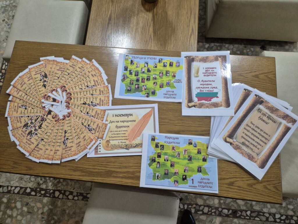 Разнообразни инициативи подготвиха учениците ни във връзка с Деня на народните будители – празник на духа, знанието и почитта към делото на всички, които през вековете са пазили българския език, култура и история. Основен двигател на идеите за учениците от прогимназиален и гимназиален етап беше Ученическият съвет. След поредица от срещи и обсъждане, членовете му подготвиха интригуваща програма, в която успяха да ангажират класовете, техните преподаватели и цялата училищна общност.