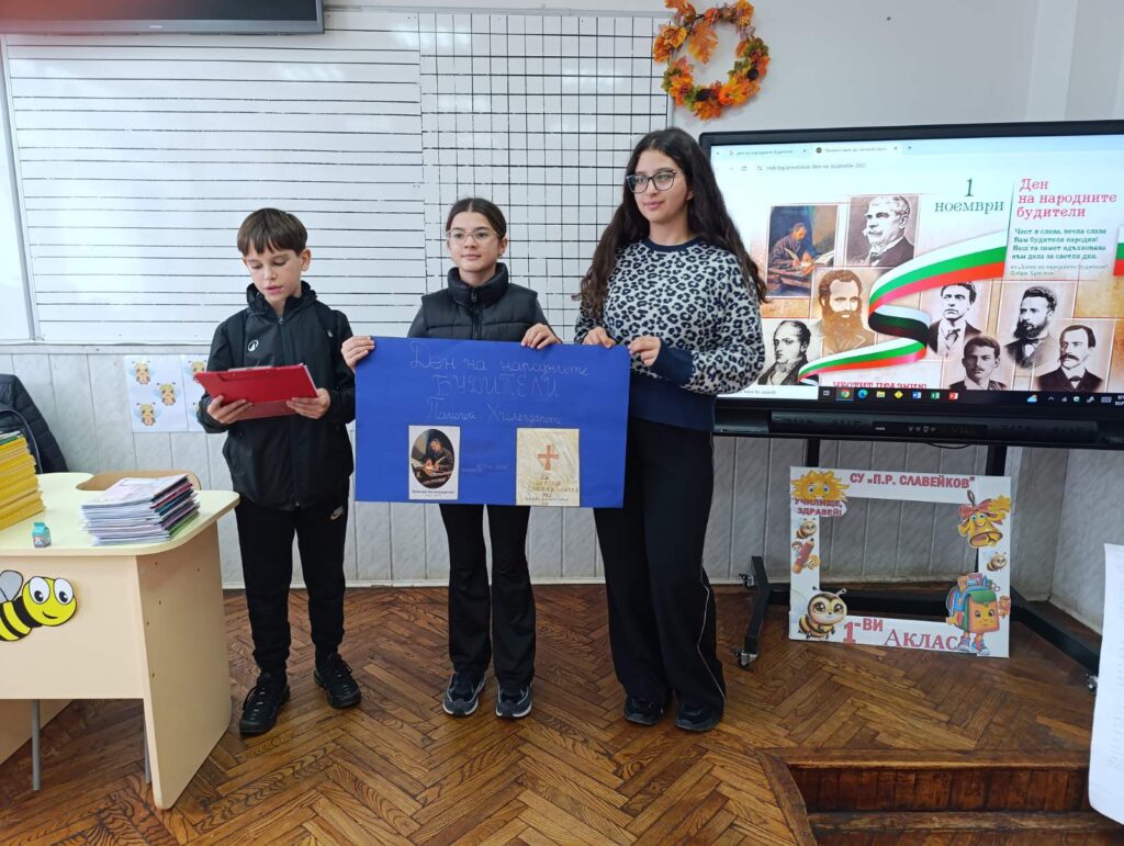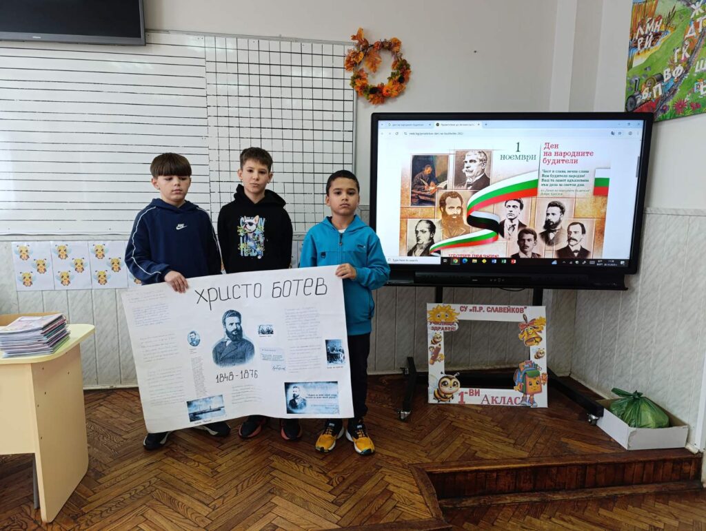 Учениците от 5 а клас, с класен ръководител Марияна Калчева, проведоха интересен Час на класа. С много вълнение и желание, разделени на отбори, Славейковци разказаха за живота и делото на видни просветители, революционери и книжовници. В часовете по технологии и предприемачество, всеки екип беше подготвил красив и оригинален постер, чрез който да онагледи своето представяне. Часът премина в дух на сътрудничество, уважение и гордост от богатото ни културно и историческо наследство. Петокласниците представиха своя оригинален проект и пред най-малките – учениците от първи клас, които посрещнаха каките и батковците с вълнение, любопитство и широки усмивки.